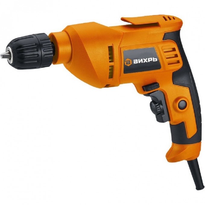 Для удобства в модели Вихрь Д-550Б использован быстрозажимной патрон, который позволяет практически мгновенно и без проблем осуществлять смену оснастки, а также специальным реверсивным механизмом, исключающим проблемы с застреванием сверла при сверлении. Имеется функционал, позволяющий регулировать частоту вращения, который обеспечивает настройку дрели в зависимости от плотности и толщины материала. Редуктор односкоростной. Скорость вращения регулируется кнопкой выключателя. Есть фиксация кнопки включения, что очень удобно во время длительных рабочих сессий. Модель Вихрь Д-550Б оснащена эргономичной рукояткой, обеспечивающей надёжное удержание инструмента. Напряжение питания сети – 220В. Вес дрели – 1.3кг.