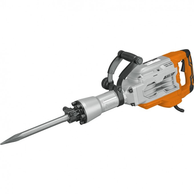 Эргономичная форма корпуса дополнена удобной рукояткой. Надежный хват обеспечивает комфорт при длительной работе, контроль над инструментом и высокую производительность. Устройство оснащено 2 м кабелем питания. Для удобства хранения и перемещения предусмотрен пластиковый кейс. Пика, зубило и тюбик со смазкой в комплекте.