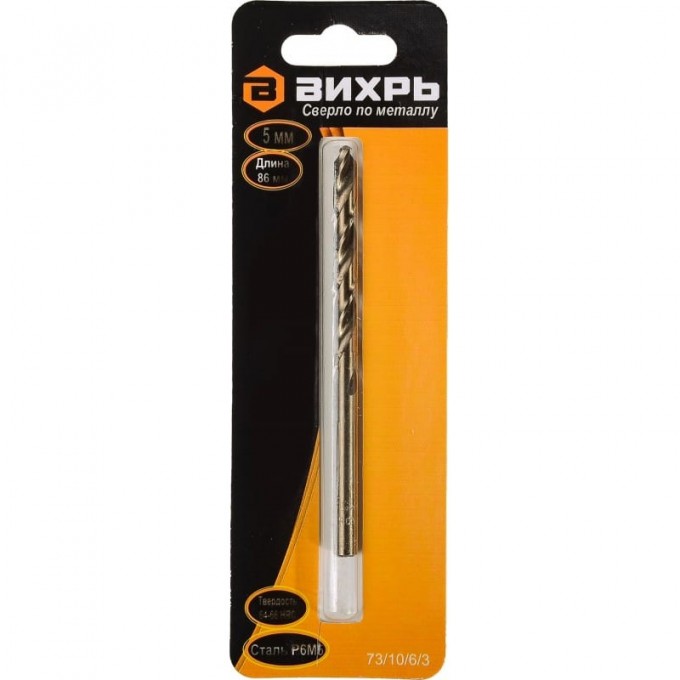 Сверло по металлу ВИХРЬ 5 мм, P6M5 (1 шт. в блистере) 73/10/6/3